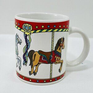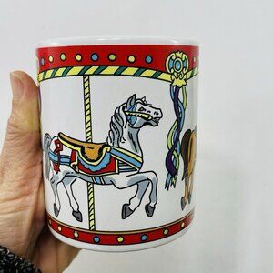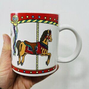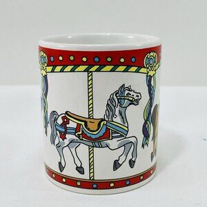 Vintage Msr Imports Christmas Mug Carousel Horses Circus Playground Ceramic 1994