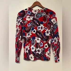 Talbots Merino Wool Puff Sleeve Paisley Bloom Pullover Sweater β Petite