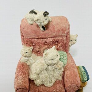 Vintage Stone Critters Family Cat Kitten Kitty Chair Recliner Figurine SC319 USA