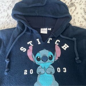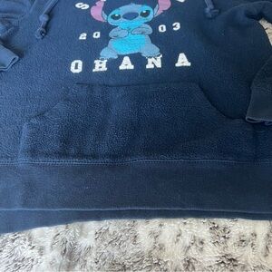 Cozy navy blue hoodie featuring Stitch graphic and 'Ohana' text. Perfect for casual wear.