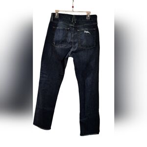 NWOT Stylish and comfortable women's blue jeans perfect for any occasion. These straight leg jeans offer a classic look with a modern twist. Stressing on right leg only and on one back pocket. fraied hem. SIZE 10/30 WAIST 15-17, INSEAM 28 1/2.