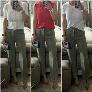 These olive green wide-leg pants are the perfect blend of comfort and style! Featuring a unique washed/worn look, they add a touch of laid-back chic to any outfit. The wide leg silhouette is on-trend and flattering, making them a versatile addition to your wardrobe. They have stretch and they are so comfortable. Modeling size 2.