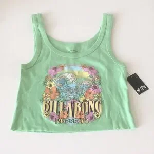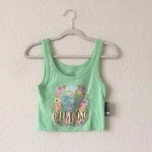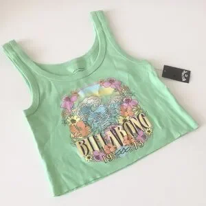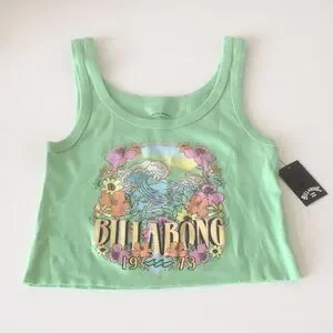 Billabong Crop Tank Top Scoop Neck Raw Hem Tee