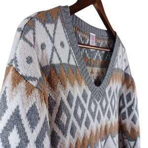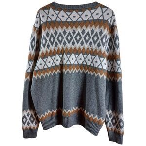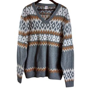 North Pole Men's XXL Gray Nordic V-Neck Fair Isle Heavyweight Heritage Sweater