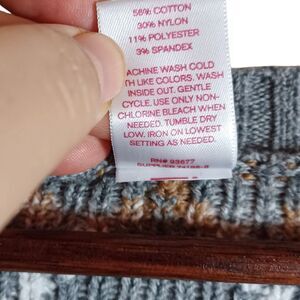 This North Pole men's sweater is a size 2XL in gray with a Nordic Fair Isle design. It features a V-neck, long sleeves, and a tight-knit style. Made of polyester, nylon, spandex, and cotton, it is machine washable and suitable for all seasons. The sweater has a heritage, heavy-weight feel with a graphic print, and is perfect for various occasions like travel, weddings, parties, workwear, and casual outings.