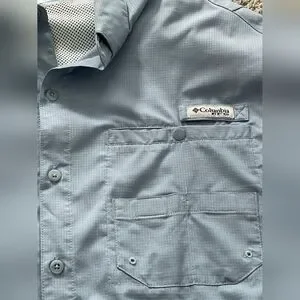excellent preowned condition Columbia Mens Powder Blue Pfg Upf Button Up Long Sleeve Shirt Size Large