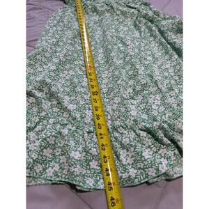 Women V Neck Ruffle Short Sleeve Floral Print Midi Dress Green Large