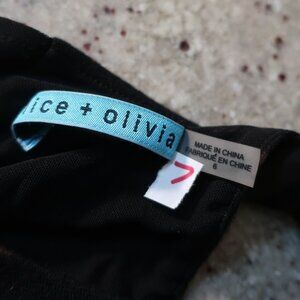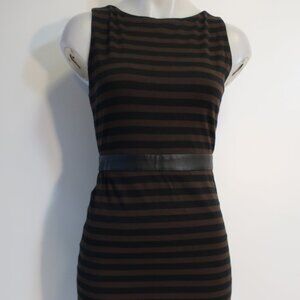 Womens Alice + Olivia Black Brown Striped Stretch Leather Waistband Mini Dress 6