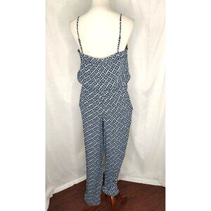 LOFT Jumpsuit S Navy Blue Geo Print Straight Leg Strappy