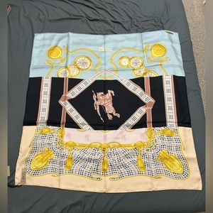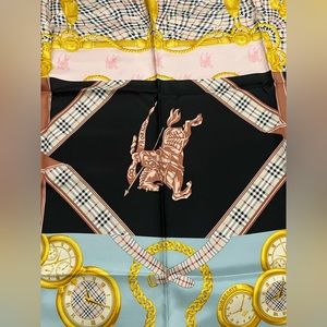 MULIT-colour scarf from Burberry. Crafted from silk, this design is decorated with multicolored logo pattern and the brand's signature check.