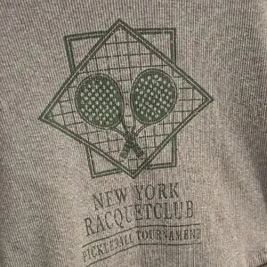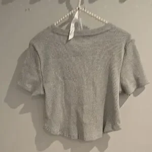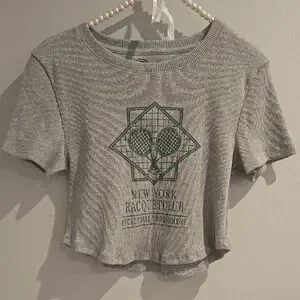 Stylish gray cropped top featuring a unique green graphic design. Perfect for casual outings. never worn. thanks