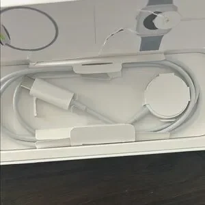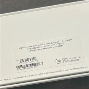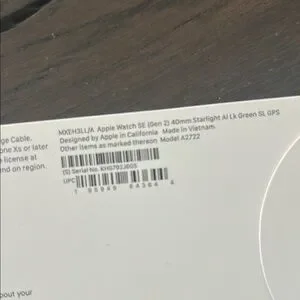 Brand new Apple Watch SE 2nd Gen w/ GPS, size 40mm. My son received as a Christmas gift, but it was the wrong version (we need GPS + cellular) and missed the return window. Never worn, used, or even tried on. Nor was it ever connected to any devices. You will see that the cover over the charging cord compartment in the box is ripped; in a state of excitement, my son ripped it while trying to access the charger so that he could begin charging right away. Watch was charged, but cord was wrapped up again and placed back.