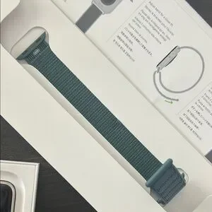 Watch is “starlight aluminum” case, size 40mm. Watch strap is Lake Green sport loop style, size small/medium.