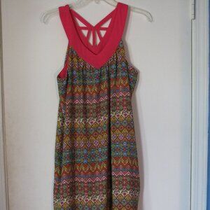 Rose & Olive dress in size medium. New with tags, this pretty dress is sleeveless and perfect for summer weather. Sexy cut out on the back, v neckline trimmed in pink. Cute floral and classic design in pink, blue, yellow and green. Sheath style., fully lined. Made from 100% polyester, hand wash recommended.
