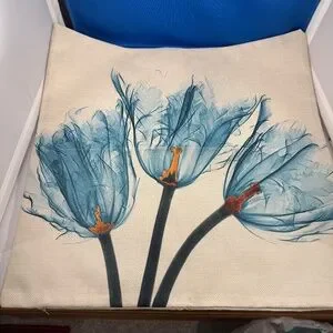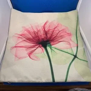 The product is a set of four decorative pillow covers designed with beautiful beige linen-like fabric, featuring a flower shape theme. Each cover measures 17 x 17 inches and is adorned with vibrant multi-color flower patterns, adding a touch of elegance to any space. These pillow covers are ideal for enhancing the decor of a living room, bedroom, or any other area in need of a floral-inspired accent. Perfect for Spring.