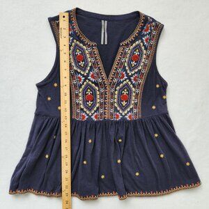 Anthropologie Emelia Navy Sleeveless Embroidered Peplum Top Boho Summer Pretty