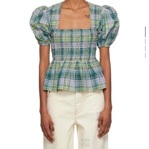 GANNI Blue Shirring Blouse - Size EU 42 (equivalent of US 10)
