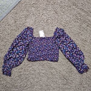 Brand new with tags Band of the Free top. Chic floral blouse with long sleeves. Perfect for casual outings. A fitted smocked bodice is framed by balloon sleeves and covered in dainty flowers on this Agathe cropped top. Features elastic cuffs on sleeve. 100% Viscose. Women's size small. Smoke free and pet free home. Please check out my other items...I'd love to make a discounted bundle for you. Thank you!!