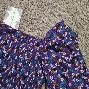 NWT Band Of The Free Agathe Purple Floral Smocked Top Small
