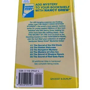 • Titles: "The Secret Of Red Gate Farm," "The Clue In The Diary," "Nancy's Mysterious Letter," "The Sign Of The Twisted Candles," "Password To Larkspur Lane"