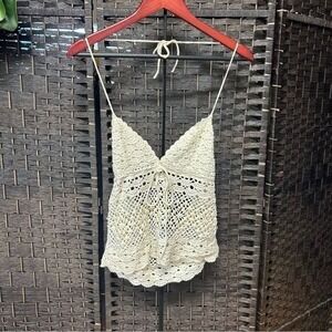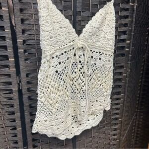 Y2K vintage Coolwear crochet & beaded halter sweater small medium in white