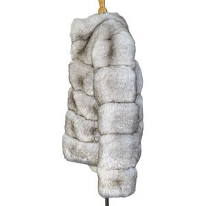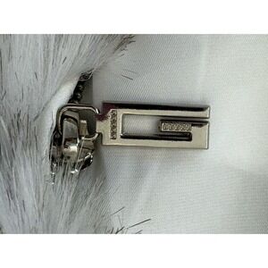 GUESS Oversized Faux Fur Jacket Gray Puffer Zip Up Coat SUPER SOFT Furry Sz L