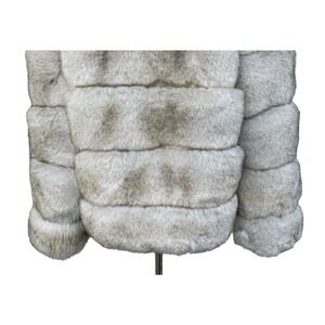 It’s pretty heavy and EXTREMELY cozy and warm! Zip closure with pockets!! There are 2 spots on the INSIDE material ONLY but the outer fur is SPOTLESS! Overall it’s in amazing condition!
