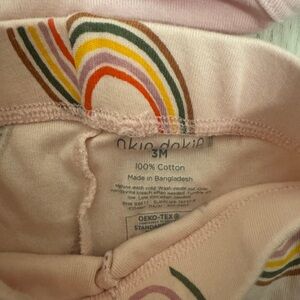 Adorable pink long-sleeve onesie top with tulle skirt. Matching pink leggings with colorful rainbow print. Perfect for playful days. Okie dokie brand good condition size 3 months