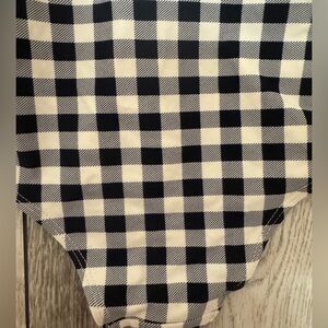 Stylish one-piece swimsuit. Black and white checkered pattern. Ruffle details with pink trim. Perfect for pool or beach. Size 18 months some wash wear see pictures