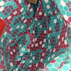 Super soft. Very clean inside. Only callout is a darker spot on the side. Due to the color, it is not noticeable. Strap is detachable. The inside features a zippered pocket and two slip pockets.