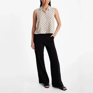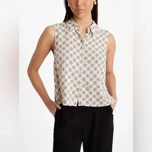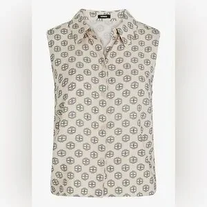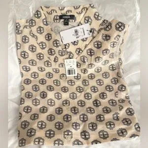 NWT. Express Printed Sleeveless Portofino Shirt. Cream White & Black. Size XS.