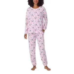 The top features a cute Hello Kitty graphic on a soft pink background, while the bottoms have an all-over print of the iconic character. The set comes in sizes LG, 2XL, and 3XL to ensure a perfect fit for everyone.