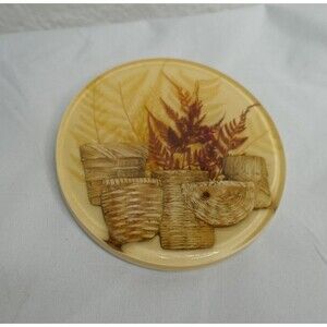 Pre-owned, vintage. Burned spot on trivet, discoloration on back side