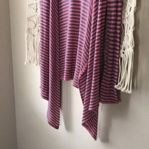 Volcom pink & gray blue stripped open cardigan sweater high low in the front sz medium