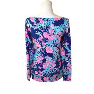 Lilly Pulitzer Pink & Blue Aleah Long Sleeve Floral Top Size XS