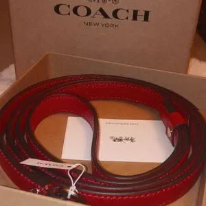 Brand new with tags! 52" long and 3/4" wide. Never been used still attached to the box it came in. Beautiful silver clasp. Eye catching red!