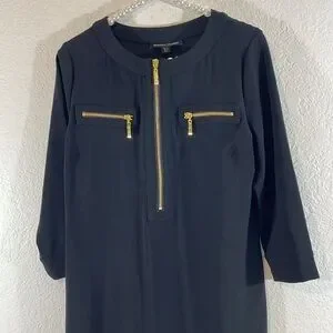 BOSTON PROPER Black Knit Dress Gold Zippers Size Medium