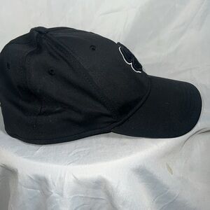 Stylish black cap featuring an embroidered clover design. Perfect for adding a touch of luck to your outfit.