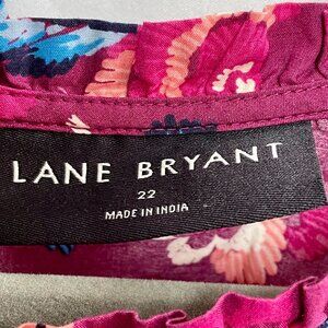 Lane Bryant Cotton Floral Popover Blouse Pink Ruffle Neck Short Sleeve Size 22