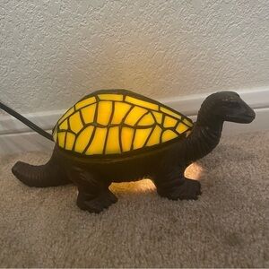 DINOSAUR Lamp with Tiffany Style Yellow Glass Shell 12" Brass