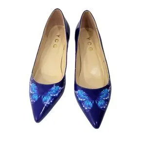 YCG Blue Patent Leather Butterfly Pumps High Heels