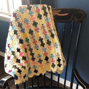 Granny Square Crocheted Afghan Throw Blanket Handmade Knit Multicolor VTG 67x49