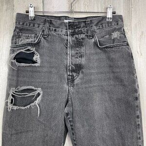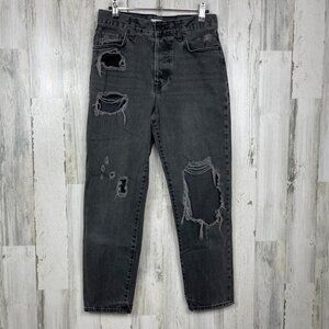 Forever 21 denim mom black 27 distressed trashed wrecked high rise grunge punk