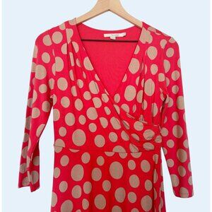 BODEN Polka Dot Faux Wrap Dress Coral Beige Size 8