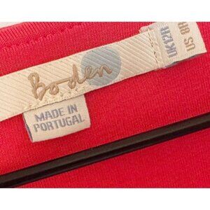 Nice dress by Boden. Faux wrap style. Pullover. Stretch fabric. Coral with beige polka dots. Mid weight. Knee length. No material tag attached. Size 8. Pre-owned and gently worn in really nice condition!