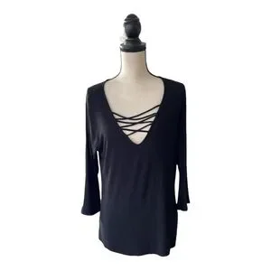 ♥️Tahari♥️women’s black 3/4 bell sleeve blouse size (Large)