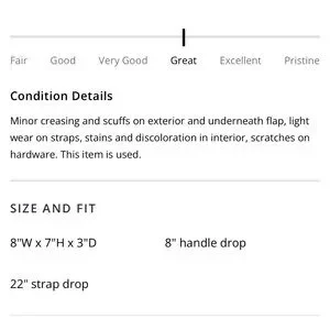 One mark (see picture) on interior but otherwise excellent condition. Comes with short and longer strap to be worn as handbag or crossbody. The bag in black is currently listed on the Chloe site for $2450.