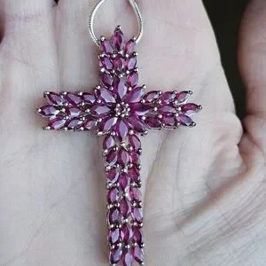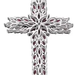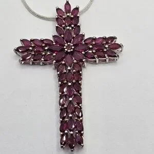 Genuine Rhodolite Garnet Cross in Platinum over Sterling Silver! ✨️🎀