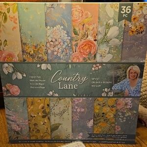 Crafters Companion Country Lane, 12x12, 36-piece floral double-sided paper pad with beautiful designs. Perfect for crafting and scrapbooking. The paper pad is no longer available and is brand new from a smoke free home.