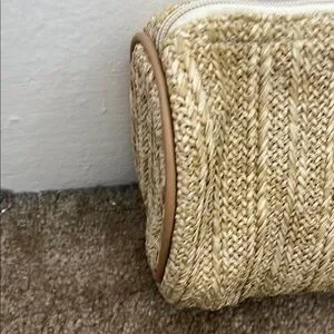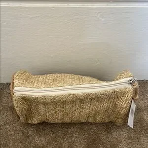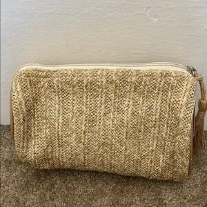 Nwt Nordstrom Woven bamboo Tan tassel zip oval shape Clutch Bag purse